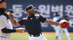 [OSEN=수원,박준형 기자]] 8일 경기도 수원시 수원kt위즈파크에서 수원 kt 선수단의 자체 훈련이 진행됐다.데스파이네가 훈련 중 미소 짓고 있다./ soul1014@osen.co.kr