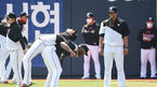 [OSEN=수원,박준형 기자]] 8일 경기도 수원시 수원kt위즈파크에서 수원 kt 선수단의 자체 훈련이 진행됐다.로하스와 쿠에바스가 동료들과 함께 훈련하고 있다. / soul1014@osen.co.kr