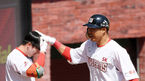 [OSEN=인천, 민경훈 기자] SK 와이번스가 8일 오후 인천 SK행복드림구장에서 자체 청백전을 가졌다.4회초 SK 수펙스 선두타자 한동민이 우월 선취 솔로홈런을 날린 후 홈을 밟으며 로맥과 기쁨을 나누고 있다./rumi@osen.co.kr