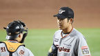 [OSEN=대전, 민경훈 기자] 16일 오후 대전 한화생명이글스파크에서 한화 이글스의 자체 청백전 경기가 열렸다.6회말을 마친 한화 청팀 이태양이 최재훈과 얘기를 나누고 있다. / rumi@osen.co.kr
