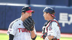 [OSEN=잠실, 곽영래 기자] LG가 두산과의 첫 연습경기에서 승리했다.LG는 21일 서울 잠실구장에서 열린 두산과의 교류전에서 5-2로 승리했다.승리를 거둔 LG 고우석과 박재욱이 이야기를 나누고 있다. /youngrae@osen.co.kr