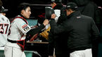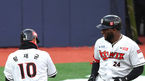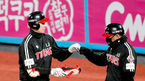 [OSEN=수원, 김성락 기자] 22일 오후 수원KT위즈파크에서 KT 위즈와 LG 트윈스의 경기가 열렸다.이날 KT는 LG를 상대로 10-3으로 승리했다.경기종료후 강현우가 하이파이브를 하고있다./ksl0919@osen.co.kr