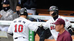 [OSEN=잠실, 조은정 기자] 22일 오후 서울 송파구 잠실 야구장에서 두산 베어스와 키움 히어로즈의 연습 경기가 열렸다.2회말 1사 2,3루 두산 국해성의 희생플라이 때 박세혁이 득점을 올린 후 박건우와 하이파이브 대신 팔꿈치를