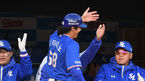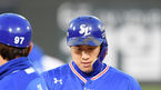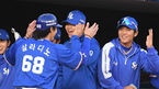 [OSEN=부산, 민경훈 기자] 23일 오후 부산 사직구장에서 롯데 자이언츠와 삼성 라이온즈의 연습경기가 열렸다. 4회초 무사 주자 1,3루 삼성 김동엽의 좌익수 앞 선취 1타점 적시타때 홈을 밟은 살라디노가 덕아웃에서 동료들과 하