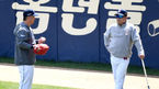 [OSEN=잠실, 최규한 기자] 26일 오후 서울 잠실야구장에서 두산 베어스의 훈련이 진행됐다.두산 김태형 감독과 유희관이 대화를 나누고 있다. /dreamer@osen.co.kr