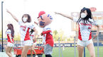 [OSEN=광주, 민경훈 기자] 27일 오후 광주 기아 챔피언스필드에서 KIA 타이거즈와 NC 다이노스의 연습경기가 열렸다. KIA 치어리더들이 무관중이지만 열띤 응원전을 펼치고 있다. /rumi@osen.co.kr