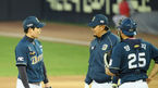 [OSEN=광주, 민경훈 기자] 27일 오후 광주 기아 챔피언스필드에서 KIA 타이거즈와 NC 다이노스의 연습경기가 열렸다. 4회말 무사 주자 1루 KIA 최정용이 번트 안타를 맞은 NC 선발 이재학이 손민한 코치와 얘기를 나누고 있다. /rumi@os