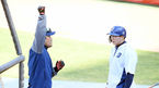 [OSEN=광주, 민경훈 기자] 27일 오후 광주 기아 챔피언스필드에서 KIA 타이거즈와 NC 다이노스의 연습경기가 열릴 예정인 가운데 양팀 훈련시간이 진행됐다. NC 이호준 코치가 나성범에게 타격자세에 대해 알려주고 있다. /rumi@osen.