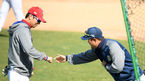 [OSEN=광주, 민경훈 기자] 27일 오후 광주 기아 챔피언스필드에서 KIA 타이거즈와 NC 다이노스의연습경기가 열릴 예정인 가운데 양팀 훈련시간이 진행됐다. KIA 김종국 코치와 NC 이호준 코치가 어색하게 주먹하이파이브를 하려 하