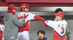 [OSEN=광주, 곽영래 기자] 27일 오후 광주-기아 챔피언스필드에서 KIA 타이거즈와 NC 다이노스의 연습경기가 열렸다.6회초 2사 KIA 김선빈이 NC 모창민의 타구를 호수비로 처리한 뒤 팔꿈치 세레머니를 하고 있다. /youngrae@osen.co.kr