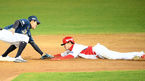 [OSEN=광주, 곽영래 기자] 27일 오후 광주-기아 챔피언스필드에서 KIA 타이거즈와 NC 다이노스의 연습경기가 열렸다.7회초 1사 1루 NC 박민우가 2루 도루를 시도하다 아웃당하고 있다. /youngrae@osen.co.kr