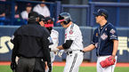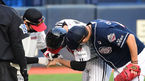 [OSEN=잠실, 지형준 기자] 1일 오후 서울 잠실야구장에서 두산 베어스와 LG 트윈스의 연습경기가 열렸다.2회말 1사에서 두산 이용찬이 LG 이형종에 사구를 허용하며 미안함을 표시하고 있다. /jpnews@osen.co.kr