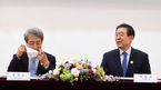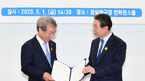 [OSEN=잠실, 지형준 기자] 1일 오후 서울 잠실야구장에서 ‘서울특별시-KBO(한국야구위원회) 코로나19에 대응 안전한 프로야구 운영을 위한 업무협약식’이 진행됐다.정운찬 KBO 총재와 박원순 서울시장이 협약식을 하고 있