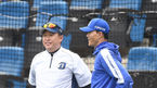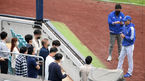 [OSEN=대구, 곽영래 기자] 5일 오후 대구 삼성라이온즈파크에서 '2020 신한은행 SOL KBO리그' 개막전 삼성 라이온즈와 NC 다이노스의 경기가 열린다.경기에 앞서 진행된 훈련시간때 NC 이동욱 감독과 삼성 허삼영 감독이 인사를 나누고