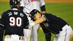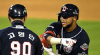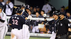 [OSEN=잠실, 조은정 기자]7일 오후 서울 잠실야구장에서‘2020신한은행SOLKBO리그’ LG 트윈스와 두산 베어스의 경기가 열렸다.5회초 1사 만루에서 두산 김재호의 좌전 2타점 적시타 때 홈을 밟은 김재환이페르난데스박세혁과