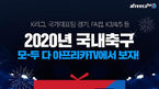 [OSEN=서정환 기자] 2020년에도 아프리카TV에서K리그를 비롯한 한국 축구 경기들을 만날 수 있다.아프리카TV는8일(금)개막하는'하나원큐K리그2020(이하K리그)'전경기를 생중계한다고 밝혔다.더불어 아프리카TV는2020년에 진행되는 대