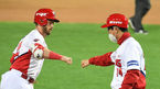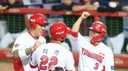 [OSEN=수원, 김성락 기자] 7일 오후 수원 KT위즈파크에서 ‘'2020 신한은행 SOL KBO 리그’ KT 위즈와 롯데 자이언츠의 경기가 열렸다.7회초 2사 1,2루 롯데 손아섭이 3점 홈런때, 민병헌이 홈을 밟고 오태근 코치와 하이파이브를