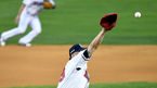 [OSEN=잠실, 최규한 기자] 8일 오후 서울 잠실야구장에서 ‘2020 신한은행 SOL KBO리그’ 두산 베어스와 KT 위즈의 경기가 열렸다.1회초 2사 주자없는 상황 KT 강백호의 안타 때 두산 선발 유희관이 타구를 잡으려 손을 뻗고 있다.