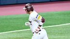 [OSEN=고척, 민경훈 기자] 8일 오후 서울 고척스카이돔에서 ‘2020 신한은행 SOL KBO리그’ 키움 히어로즈와 한화 이글스의 경기가 열렸다.7회말 키움 선두타자 이정후가 우중간 3루타를 날린 후 3루에서 조재영 코치에게 축하