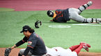 [OSEN=고척, 민경훈 기자] 9일 오후 서울 고척스카이돔에서 ‘2020신한은행SOLKBO리그’ 키움 히어로즈와 한화 이글스의 경기가 열렸다.6회말 2사 주자 3루 키움 서건창이 역전 1타점 적시타를 날린 후 1루에서 오윤 코치와 하이