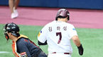 [OSEN=고척, 조은정 기자]10일 오후 서울 고척스카이돔에서 ‘2020신한은행SOLKBO리그’ 키움 히어로즈와 한화 이글스의 경기가 열렸다.7회말 2사 주자 만루에서 키움 임병욱의 우익수 오른쪽 2타점 2루타 때 키움 김하성이 홈
