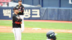 [OSEN=잠실, 곽영래 기자] 10일 오후 서울 잠실야구장에서 '2020 신한은행 SOL KBO리그' 두산 베어스와 KT 위즈의 경기가 열렸다.4회말 무사 1,2루 KT 김민이 두산 페르난데스에게 스리런 홈런을 허용한 뒤 아쉬워하고 있다. /youngrae@osen.co