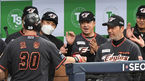 [OSEN=고척, 민경훈 기자] 10일 오후 서울 고척스카이돔에서 ‘2020 신한은행 SOL KBO리그’ 키움 히어로즈와 한화 이글스의 경기가 열렸다.1회초 1사 주자 1루 한화 호잉이 우월 선취 투런홈런을 날린 후 덕아웃에서 한용덕 감