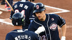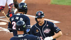 [OSEN=부산, 최규한 기자] 13일 부산 사직야구장에서 ‘2020 신한은행 SOL KBO리그’ 롯데 자이언츠와 두산 베어스의 경기가 열렸다.1회초 2사 1루 상황 두산 김재환이 선제 우월 투런포를 날리고 홈을 밟은 뒤 페르난데스와 인