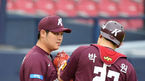 [OSEN=수원 , 곽영래 기자] 16일 오후 수원 KT위즈파크에서 '2020 신한은행 SOL KBO리그' KT 위즈와 삼성 라이온즈의 경기가 열렸다.5회초 2사 만루 삼성 허삼영 감독이 밀어내기 볼넷으로 이학주와 기뻐하고 있다. /youngrae@osen.co.kr