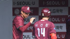 [OSEN=잠실,박준형 기자] 17일 오후 서울 잠실구장에서 2020 KBO리그 LG 트윈스와 키움 히어로즈의 경기가 진행됐다.6회초 1사 키움 서건창이 솔로홈런을 날리고 손혁 감독의 축하를 받고 있다. ./ soul1014@osen.co.kr