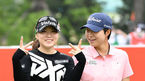 [OSEN=양주, 이대선 기자] 17일 경기도 양주시 레이크우드 컨트리클럽에서 한국여자프로골프(KLPGA) 투어 KLPGA 챔피언십이 열렸다.조아연과 김지수가 1번홀에서 티샷을 마치고 이동하며 취재진을 향해 포즈를 취하고 있다./sunday@osen.