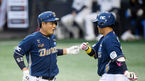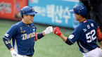 [OSEN=잠실,박준형 기자] 20일 오후 서울 잠실구장에서 KBO리그 두산 베어스와 NC 다이노스의 경기가 진행됐다.4회초 1사 NC 양의지가 동점 솔로홈런을 날린뒤 이동욱 감독과 하이파이브를 하고 있다. / soul1014@osen.co.kr