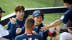 [OSEN=수원 , 곽영래 기자] 20일 오후 수원 KT위즈파크에서 '2020 신한은행 SOL KBO리그' KT 위즈와 한화 이글스의 경기가 열렸다.2회말 1사 3루 KT 배정대가 심우준의 안타로 득점을 올린 뒤 동료들과 기뻐하고 있다. /youngrae@osen.co.kr