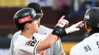 [OSEN=수원 , 곽영래 기자] 20일 오후 수원 KT위즈파크에서 '2020 신한은행 SOL KBO리그' KT 위즈와 한화 이글스의 경기가 열렸다.2회말 1사 1루 KT 배정대가 1타점 적시 3루타를 때린 뒤 세레머니를 하고 있다. /youngrae@osen.co.kr