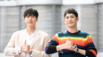 [OSEN=조은정 기자]20일 오후 서울 마포구 상암 MBC 주차장에서 MBC '꼰대인턴' 온라인 제작발표회 출근길 행사가 열렸다.배우 박해진, 박기웅이 포즈를 취하고 있다. /cej@osen.co.kr