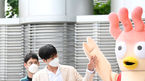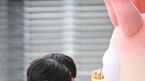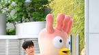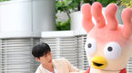 [OSEN=조은정 기자]20일 오후 서울 마포구 상암 MBC 주차장에서 MBC '꼰대인턴' 온라인 제작발표회 출근길 행사가 열렸다.배우 박해진이 중심을 잃은 인형탈을 돕고 있다. /cej@osen.co.kr