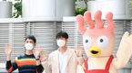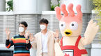 [OSEN=조은정 기자]20일 오후 서울 마포구 상암 MBC 주차장에서 MBC '꼰대인턴' 온라인 제작발표회 출근길 행사가 열렸다.배우 박기웅, 박해진이 드라마 속 출연 인형탈과 포즈를 취하고 있다. /cej@osen.co.kr