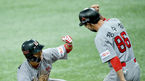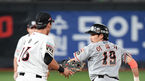 [OSEN=고척,박준형 기자] 21일 오후 서울 고척스카이돔에서 KBO리그 키움 히어로즈와 SK 와이번스의 경기가 진행됐다.8회초 무사 3루 SK 이홍구의 역전 희생플라이때 역전 득점 성공한 3루 주자 김창평이 염경엽 감독과 하이파이브를