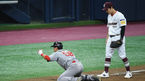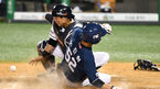 [OSEN=잠실, 최규한 기자] 21일 오후 서울 잠실야구장에서 ‘2020 신한은행 SOL KBO리그’ 두산 베어스와 NC 다이노스의 경기가 열렸다.8회초 2사 1루 상황 NC 강진성의 추격의 1타점 2루타 때 주자 노진혁이 홈까지 내달려 세이프