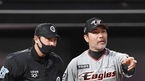 [OSEN=수원 , 민경훈 기자] 21일 오후 수원 KT위즈파크에서 '2020 신한은행 SOL KBO리그' KT 위즈와 한화 이글스의 경기가 열렸다.3회말 무사 주자 1,2루 KT 조용호의 우익수 오른쪽 1타점 적시타때 한화 한용덕 감독이 그라운드로 나와 항