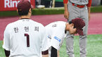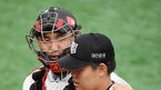 [OSEN=수원 , 민경훈 기자] 21일 오후 수원 KT위즈파크에서 '2020 신한은행 SOL KBO리그' KT 위즈와 한화 이글스의 경기가 열렸다.1회초를 마친 KT 선발 소형준이 장성우와 얘기를 나누며 덕아웃으로 향하고 있다. /rumi@osen.co.kr