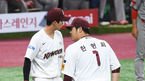 [OSEN=고척,박준형 기자] 21일 오후 서울 고척스카이돔에서 KBO리그 키움 히어로즈와 SK 와이번스의 경기가 진행됐다.1회초 무사 1,2루 SK 로맥의 내야안타때 한현희와 김혜성이 라인 안쪽에 멈춰선 공을 바라보고 있다./ soul1014@osen.co