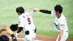 [OSEN=잠실, 최규한 기자] 21일 오후 서울 잠실야구장에서 ‘2020 신한은행 SOL KBO리그’ 두산 베어스와 NC 다이노스의 경기가 열렸다.9회초 1사 만루 상황 NC 노진혁의 역전 2타점 2루타 때 홈을 밟은 양의지와 나성범이 더그아