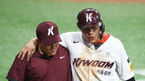 [OSEN=고척,박준형 기자] 21일 오후 서울 고척스카이돔에서 KBO리그 키움 히어로즈와 SK 와이번스의 경기가 진행됐다.9회말 2사 2루 키움 박동원의 동점 적시타때 홈을 밟은 김하성이 부축을 받으며 더그아웃으로 들어가고 있다 . /