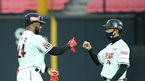 [OSEN=수원 , 민경훈 기자] 2일 오후 수원 KT위즈파크에서 '2020 신한은행 SOL KBO리그' KT 위즈와 두산 베어스의 경기가 열렸다.2회초 무사 주자 1,3루 두산 허경민의 좌중간 2타점 적시타때 홈을 밟은 박건우와 박세혁이 덕아웃에서 동