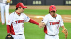 [OSEN=잠실,박준형 기자] 3일 오후 서울 잠실구장에서 KBO리그 LG 트윈스와 삼성 라이온즈의 경기가 진행됐다.5회초 1사 1,2루 삼성 이원석이 3점 홈런을 날리고 허삼영 감독과 하이파이브를 하고 있다. / soul1014@osen.co.kr