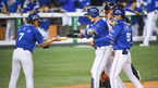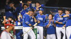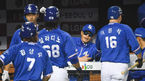 [OSEN=잠실,박준형 기자] 3일 오후 서울 잠실구장에서 KBO리그 LG 트윈스와 삼성 라이온즈의 경기가 진행됐다.5회초 1사 1,2루 삼성 이원석이 3점 홈런을 날리고 동료들의 축하를 받고 있다. / soul1014@osen.co.kr
