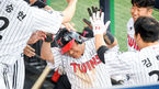 [OSEN=잠실,박준형 기자] 3일 오후 서울 잠실구장에서 KBO리그 LG 트윈스와 삼성 라이온즈의 경기가 진행됐다.2회말 1사 2루 LG 유강남의 선취 1타점 적시타때 2루 주자 정근우가 득점 후 동료들의 축하를 받고 있다. 정근우는 전 타석