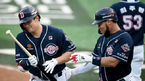 [OSEN=수원,박준형 기자]4일 오후 경기도 수원시 수원KT위즈파크에서 KBO리그 KT 위즈와 두산 베어스의 경기기 진행됐다.1회말 2사 1루 KT 로하스가 1타점 적시 2루타를 날린뒤 박기혁 1루 코치와 하이파이브를 하고 있다.. / soul1014@ose