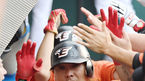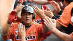 [OSEN=대전, 곽영래 기자] 13일 오후 대전 한화생명이글스파크에서 '2020 신한은행 SOL KBO리그' 한화 이글스와 두산 베어스의 경기가 열렸다.1회말 1사 1루 한화 김태균이 동점 투런홈런을 때려낸 뒤 동료들과 기뻐하고 있다. /youngrae@o